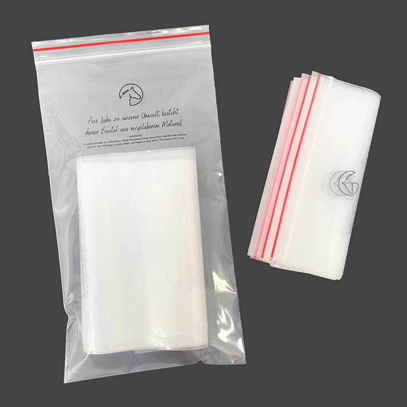 ముద్ర వేయదగిన డిజైన్:రీసైకిల్ సీలబుల్ బ్యాగులునీరు, తేమ మరియు ధూళి నుండి సమర్థవంతంగా రక్షించే ముద్ర వేయదగిన మూసివేతను కలిగి ఉంటుంది. ఈ డిజైన్ రెగ్యులర్ యొక్క ఓపెన్ డిజైన్తో పోలిస్తే విషయాలకు మంచి రక్షణను అందిస్తుందిరీసైకిల్ ప్లాస్టిక్ సంచులు.