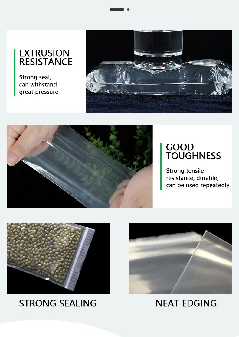 రీసైకిల్ స్వీయ-సీలింగ్ బ్యాగులుపర్యావరణ స్థిరత్వాన్ని ప్రాక్టికాలిటీ మరియు ఖర్చు-ప్రభావంతో కలిపి అనేక ప్రయోజనాలను అందించండి. రీసైకిల్ పదార్థాల నుండి తయారైన అవి ప్లాస్టిక్ వ్యర్థాలను తగ్గించడానికి మరియు స్థిరమైన అభివృద్ధి లక్ష్యాలతో సమం చేయడానికి సహాయపడతాయి. స్వీయ-సీలింగ్ డిజైన్ తేమ మరియు ధూళి నుండి విషయాలను రక్షించడానికి అద్భుతమైన సీలింగ్ పనితీరును అందించేటప్పుడు సులభంగా తెరవడం మరియు మూసివేసేలా చేస్తుంది. ఈ సంచులు అధిక కన్నీటి నిరోధకత మరియు పునర్వినియోగం కూడా కలిగి ఉంటాయి, వాటి ఆయుష్షును విస్తరిస్తాయి. అదనంగా, రీసైకిల్ పదార్థాల వాడకం ఉత్పత్తి ఖర్చులను తగ్గిస్తుంది, ఇది అధిక ఆర్థిక ఎంపికగా మారుతుంది. ఫుడ్ ప్యాకేజింగ్, గృహ నిల్వ లేదా పారిశ్రామిక రవాణా కోసం,రీసైకిల్ స్వీయ-సీలింగ్ బ్యాగులుఅధిక బహుముఖ మరియు సమర్థవంతమైనదని నిరూపించండి.