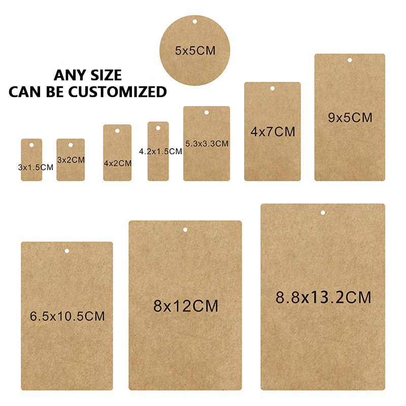 ఉత్సాహం Xదాని కోసం విస్తృత శ్రేణి అనుకూలీకరణ ఎంపికలను అందిస్తుందికస్టమ్ క్రాఫ్ట్ పేపర్ హ్యాంగ్ ట్యాగ్లు, పరిమాణం, ఆకారం, రంగు మరియు ప్రింటింగ్ ముగింపులతో సహా. మీరు మినిమలిస్ట్ మైదానాన్ని ఇష్టపడుతున్నారాక్రాఫ్ట్ పేపర్ ట్యాగ్లులేదా లోగోలు మరియు ప్రత్యేకమైన డిజైన్లతో వ్యక్తిగతీకరించిన ట్యాగ్లు, మా బృందం అధిక-నాణ్యత ముద్రణ మరియు ఖచ్చితమైన కట్టింగ్ను నిర్ధారిస్తుంది. ఈ ట్యాగ్లు దుస్తులు, పాదరక్షలు, రిటైల్ ఉత్పత్తులు మరియు ఉపకరణాల కోసం ఖచ్చితంగా సరిపోతాయి, బ్రాండ్ గుర్తింపు మరియు కస్టమర్ అనుభవాన్ని మెరుగుపరిచే ప్రత్యేక టచ్ను జోడిస్తుంది.